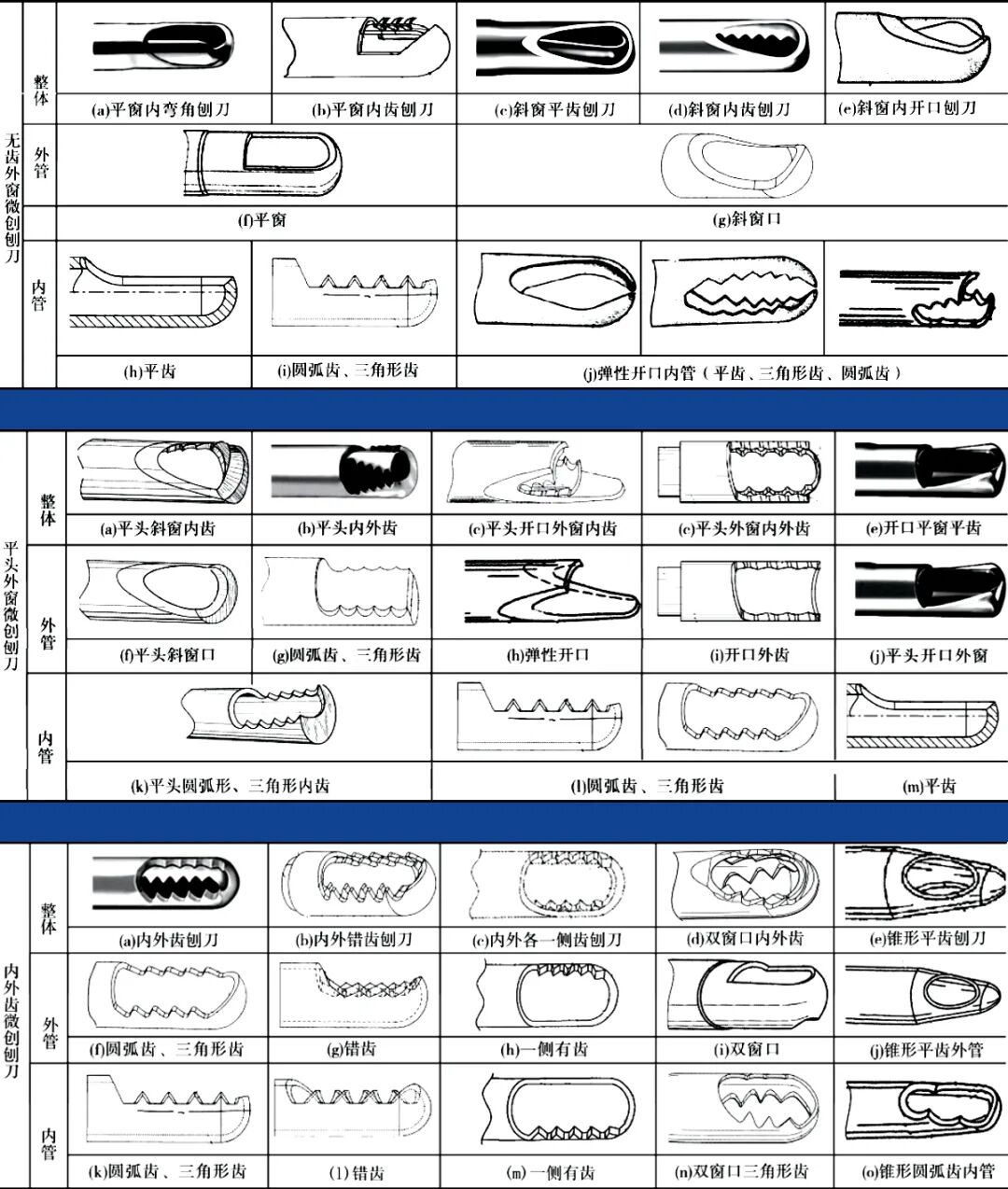 动力刨削系统在关节镜手术中的作用与地位是毋庸置疑的,通常来说,其包含了刨刀与磨头两种高性能刀具。如何对不同外观的刀具进行设计理念与临床应用上的归纳总结?下文将从三个方面进行简要概括。