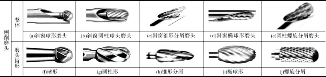 磨头通常用于骨质的去除。一般分为螺旋状的球形、圆柱形、锥形以及椭球形的设计。全螺纹的磨头可同时迅速切割软组织和骨组织,提高手术效率;螺旋状磨头内芯保证组织碎屑顺畅排出,也有加工分屑槽来保证排屑;斜角的刀头设计能使手术过程中轻松达到打磨部位,许多外科医生更加倾向使用椭球形磨头进行手术。